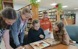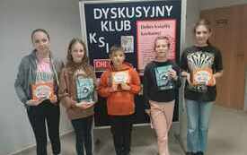 Edyta Adamczak wraz z Klubowiczami DKK, działającym w Bibliotece Publicznej Miasta i Gminy w Kańczudze