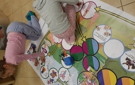 Na zakończenie naszego spotkania troszkę zakręciło nam się w głowach od kolorów podczas zabawy z grą "Karuzela Bajek ". Bardzo dziękuję za  dzisiejsze spotkanie i do zobaczenia w marcu!