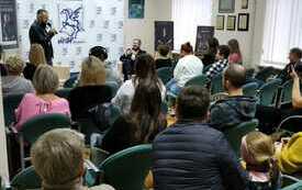 Kilkanaście osób siedzi na krzesłach i słucha osoby do nich mówiącej. Kilkanaście osób siedzi na krzesłach i słucha osoby do nich mówiącej. IMG_20231020_182404 Kilka osób pozuje do wspólnego zdjęcia. Kobiety pozują do wspólnego zdjęcia. Mężczyzna nagrywa wywiad z dziennikarzem. Dwóch mężczyzn przy stole rozmawia. obok kobieta która zapowiada spotkanie. Kilkanaście osób siedzi na krzesłach i słucha osoby do nich mówiącej. Mężczyzna podpisuje książki przy stole, obok siedzi mężczyzna. Kilkanaście osób siedzi na krzesłach i słucha osoby do nich mówiącej.