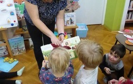 Warsztaty zakończyliśmy zajęciami plastycznymi, podczas których maluchy wraz z opiekunami wykonały kolorowe kocyki, którymi przykryli śpiące misie. W końcu to jeszcze nie czas na to, aby budziły się z zimowego snu.