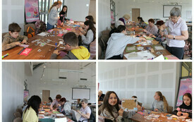 z uczestników warsztatów mógł wykonać dwie strony albumu, wykorzystując do tego rozmaite materiały dekoracyjne. A dzieci dodatkowo tworzyły kartki z okazji Dnia Mamy, które wręczą swoim ukochanym mamom 26 maja.