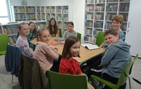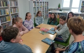 Spotkanie DKK dla dzieci w GBP w Lubeni o książce "Tajemnica niebieskich drzwi" Moniki Kamińskiej