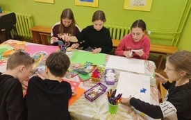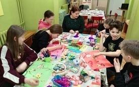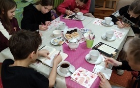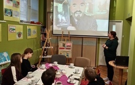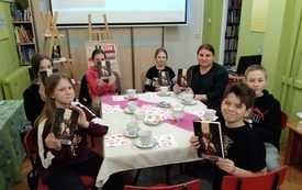 Po części spotkania wymagającej wiedzy literackiej i empatii nastąpiła część o znacznym stopniu abstrakcji. Nasze Książkołaki stanęły przed zadaniem popatrzenia na świat ,,oczami” Michaliny. I tak miejsca znane im z życia codziennego zapełniły się wytworami ich wyobraźni. Następnie nasi młodzi Czytelnicy przedstawili swoje niezwykle fantazyjne krajobrazy. Tego typu lektur Książkołaki chcą więcej!
