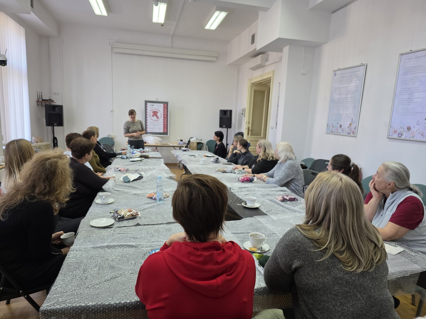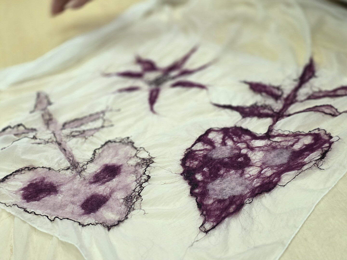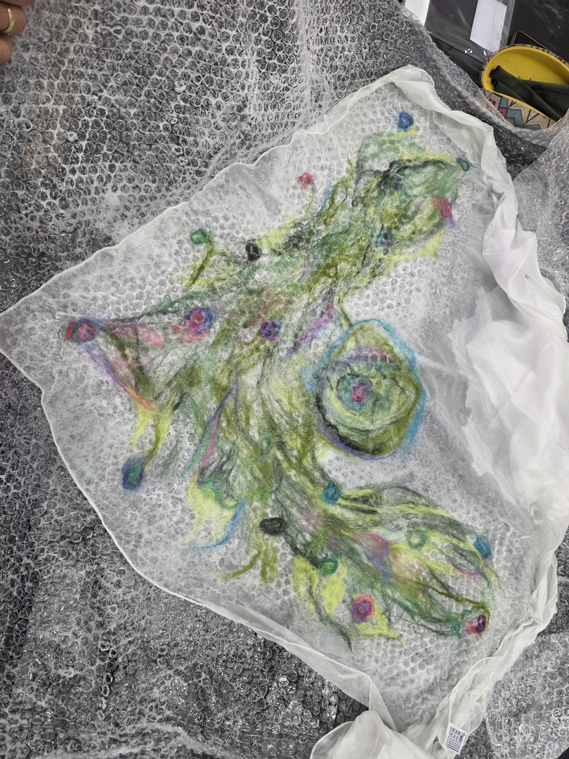 Zaczynając warsztaty rękodzielnicze, instruktorka omówiła poszczególne etapy pracy, zdradzając kolejno tajniki techniki filcowania na mokro. Zaprezentowała także swoje przykładowe prace, sugerując, jakich rezultatów można się po filcowaniu tą metodą spodziewać i jak unikać błędów.