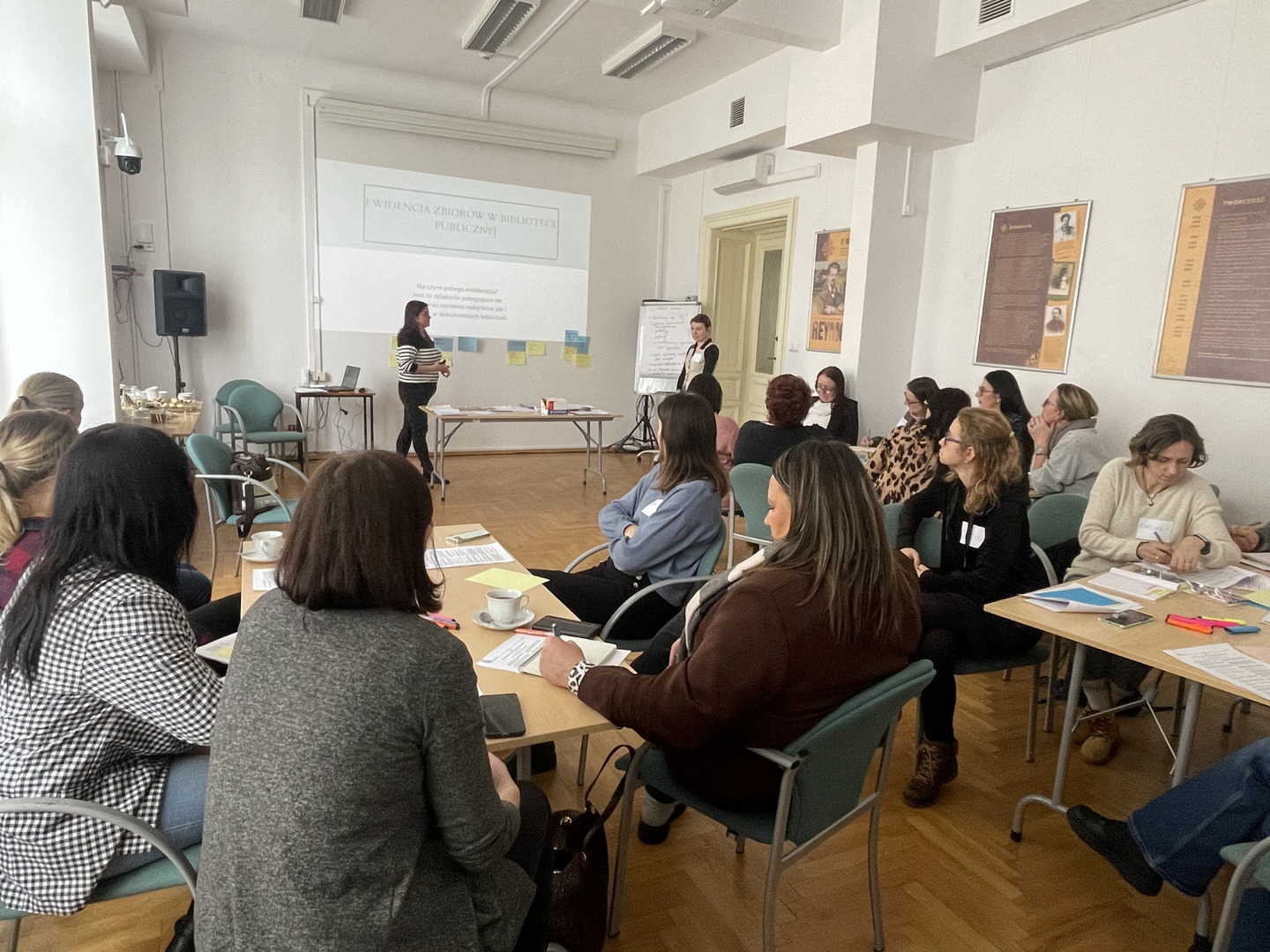 W trakcie szkolenia zwrócono uwagę na to, jaką drogę musi pokonać książka, aby mogła zostać przekazana w ręce czytelnika. Instruktorki omówiły poszczególne kroki prowadzenia dokumentacji zgodnie z obowiązującymi przepisami, skupiając się na tematach związanych z rejestrem przybytków, księdze inwentarzowej, ubytkach, a następnie uczestnicy szkolenia stworzyli praktyczne wskazówki ewidencjonowania i wycofywania zbiorów w formie plakatów.