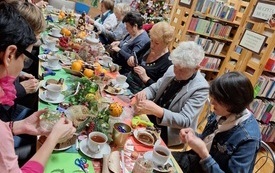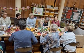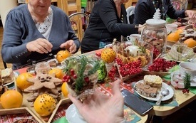 Zadziałała magia przygotowań dekoracji, symbolizujących nadchodzący radosny czas świętowania, a to za sprawą ozdób wykonanych przez uczestniczki warsztatów z klubu „Radość czytania”. Panie przygotowały świąteczne lampiony ozdobione choinkowymi gałązkami, jutowymi ozdobami oraz przyprawami: laskami cynamonu, goździkami i gwiazdkami anyżu. Twórczym pracom towarzyszyły rozmowom o bliskich, wspomnieniom, tradycjach rodzinnych, życzliwości, zdrowiu i życiu. Dziękujemy za wspólnie spędzony czas w atmosferze ciepła i życzliwości.