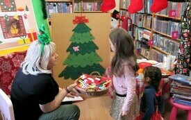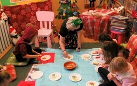 Grudniowe spotkanie (09.12.2023 r.) nie mogło mieć innego tematu jak „W kuchni u Pani Mikołajowej”. Zajęcia rozpoczęły się prezentacją dotyczącą życia Pani Mikołajowej i jej pomocników. Dzieci poznały pomocne elfy i pracowite renifery, a imiona pomocników wprawiły uczestników spotkania w pogodny nastrój. Nasi mali czytelnicy z ekscytacją chłonęli tajniki kuchni, a zapach pomarańczy z goździkami sprawił, że czuć było świąteczny klimat. Wspólnie przeczytaliśmy książkę pt. „Jano i Wito. Zapach świąt” Wioli Wołoszyn, która była swego rodzaju kontynuacją „zapachowych” zabaw. Dzięki nim dzieci rozbudziły swoje zmysły węchu, a także dotyku. Gdy świąteczna atmosfera na dobre zagościła pośród uczestników spotkania, można było przejść do wspólnego dekorowania pierniczków. Na koniec każdy rodzic otrzymał oryginalny, toruński przepis na pierniczki. Tego dnia ciężko było się rozstać i powrócić do codziennych spraw.
