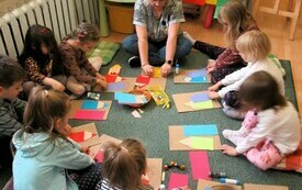 Książka pt. „Co zdarzyło się w piórniku” Izabeli Mikrut stanowiła główny temat listopadowego spotkania (25.11.2023 r.). Naszym czytelnikom bardzo spodobała się interaktywna książka, którą można nie tylko czytać, ale także doskonale się bawić rozwiązując z niej zadania. Po trudach matematycznej łamigłówki z kredkami, dzieci i rodzice stali się widzami w teatrze. Krótka historia „Teatrzyku Zielonej Kredki” wszystkich rozbawiła i pokazała, że każdy ma w sobie talent. Nasze zdolne maluchy z łatwością poradziły sobie z dopasowaniem kolorowych przedmiotów na chuście Klanza, a na koniec zrobiły przestrzenne papierowe kredki. Warto podkreślić, że podczas zajęć, można było zauważyć, jak w trakcie zajęć coraz bardziej otwierają się na siebie, współpracują i pomagają sobie nawzajem.