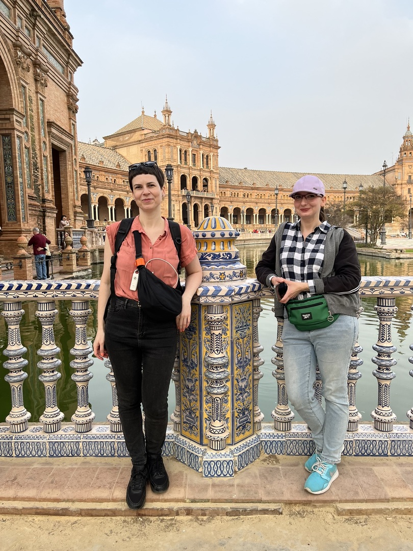 Czas po zajęciach przeznaczyłyśmy na odkrywanie kultury i tradycji stolicy Andaluzji, gdzie przenikają się wpływy arabskie, chrześcijańskie i żydowskie. Podążałyśmy szlakiem pisarzy z Generacji ‘27, zwiedziłyśmy Alcazar, Plac Hiszpański, katedrę i Giraldę, podziwiałyśmy ceramiczne detale obecne na każdym kroku. Odwiedziłyśmy Królewską Fabrykę Cygar (w której mieści się teraz uniwersytet) znaną z opery „Carmen” Georges’a Bizeta. Poszukując w tkance miejskiej proekologicznych rozwiązań, dotarłyśmy do Metropol Parasol zwanego również Setas, największej na świecie drewnianej konstrukcji, będącej ikoną Sewilli i symbolem zrównoważonej architektury. Odwiedziłyśmy także Fundację Mas, promującą rozwój poprzez edukację i działania społeczne.