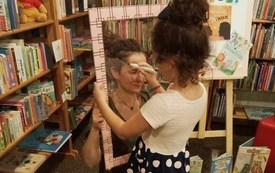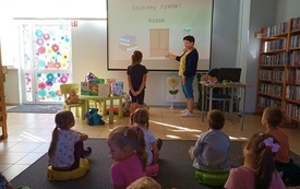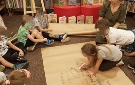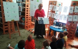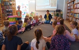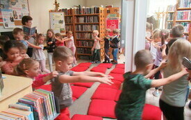 Jednak to nie wszystko! Inspiracji jest więcej. Bibliotekarki z Filii nr 2 opowiedziały dzieciom o Julianie Przybosiu. Czy tworzył tylko dla dorosłych? Oczywiście, że nie! Wraz z córką - obecnie również poetką i malarką - Utą, razem rymowali, a owocem tych rodzicielskich zabaw był tomik „Wiersze dla Uty”. Z kolei Filie nr 6 i 7 zaprosiły dziecięce grupy do licznych zabaw ruchowych, a wśród nich królowały „pociąg” oraz „chodził lisek koło drogi”. Nie zabrakło także słowotwórczych rebusów. W Filii nr 8 natomiast, och! Prawdziwe „cuda-wianki”! Zajęcia z elementami idei zero-waste to specjalność tej agendy bibliotecznej. A tym razem ekologiczne materiały posłużyły do napisania wielkiego - pod względem formy i treści - utworu, powstałego wskutek inspirującej burzy mózgów. Dzieci wzięły także udział w zabawie z dziwnym lusterkiem, na podstawie wiersza „Lustereczko, nie kłam przecie” z tomiku pt. „Pokłóciły się Poetki o pietruszkę i skarpetki” (polecamy serdecznie).