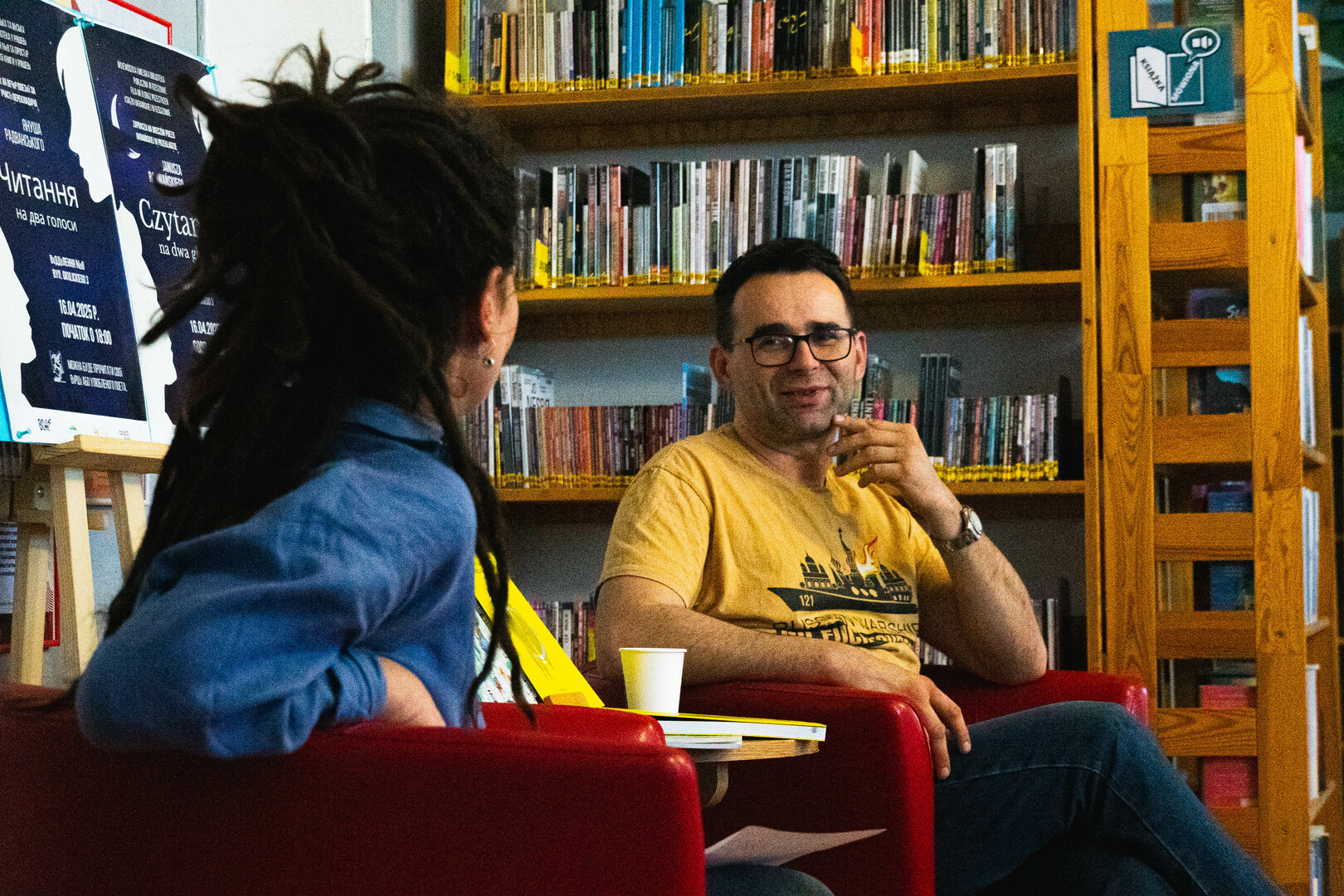 Wiele uwagi zajęło czytanie wierszy ukraińskich poetów. Mieliśmy okazję wysłuchać tekstów Artura Dronia w przekładzie naszego gościa. Książka poetycka „Tu byliśmy” niebawem ukaże się na polskim rynku wydawniczym, poznaliśmy również twórczość Pawlo Korabczuka czy Wołodymyra Arieniewa, Daryny Gładun.