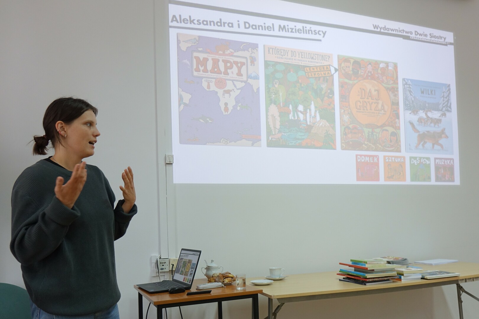 W trakcie spotkania bibliotekarze poznali najsłynniejsze tytuły i twórców – autorów i ilustratorów, dzięki którym Dwie Siostry zyskały rozpoznawalność i uznanie. Wśród nich znajdują się m.in. Aleksandra i Daniel Mizielińscy autorzy bestselerowych „Map”, „Którędy do Yellowstone”, Piotr Socha autor „Pszczół”, „Drzew”, „Brudu”, Tina Oziewicz autorka „Co robią uczucia” i ilustratorka Aleksandra Zając.