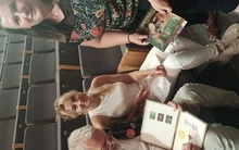 Trzy osoby siedzą na fotelach za nimi baner, wokół siedzą dzieci na krzesłach i słuchają. Na scenie prowadząca spotkanie i dzieci, które siedzą na poduszkach. Dzieci siedzą na poduszkach, obok stoi pan i dziewczyny przy stoliku. Pan coś mówi do dzieci. Do wspólnego zdjęcia pozują mężczyzna i dwie kobiety W sali zgromadzone osoby siedzą na spotkaniu autorskim, kobieta trzyma mikrofon i podstawia drugiej kobiecie do buzi. Obok siedzi mężczyzna. Dwie kobiety stoją na scenie i pokazują na baner. Na scenie kobieta mówi do mikrofonu, reszta osób stoi i słucha. nagrodzeni w konkursie pozują do wspólnego zdjęcia, jeden z panów kuca. Kobiet prezentuje na ekranie swoją prezentacje i mówi do zgromadzonych. Kobieta stoi i pozuje do zdjęcia, druga kobieta siedzi i się uśmiecha, mężczyzna pisze na książce. Kobieta pozuje do zdjęcia, dwoje ludzi siedzi, kobieta się uśmiecha mężczyzna podaje książkę. Czworo ludzi pozuje do wspólnego zdjęcia. Pięcioro ludzi stoi na tle budynku i pozuje do wspólnego zdjęcia.