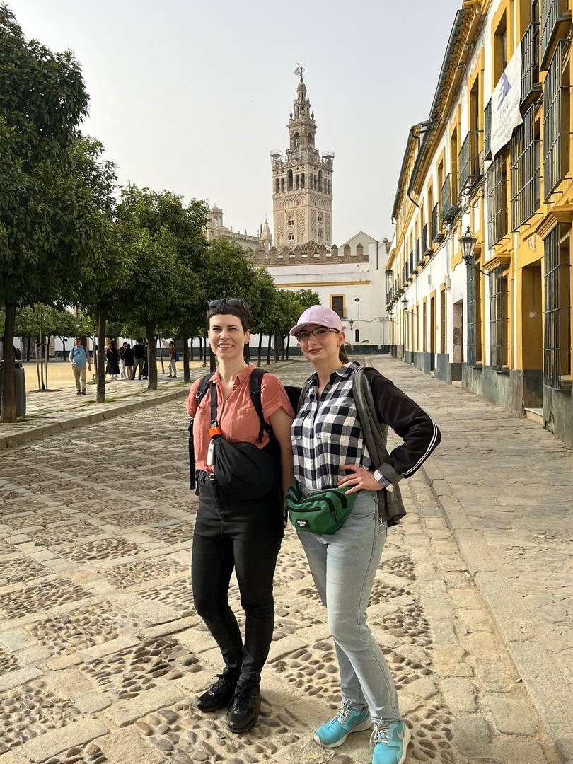 Czas po zajęciach przeznaczyłyśmy na odkrywanie kultury i tradycji stolicy Andaluzji, gdzie przenikają się wpływy arabskie, chrześcijańskie i żydowskie. Podążałyśmy szlakiem pisarzy z Generacji ‘27, zwiedziłyśmy Alcazar, Plac Hiszpański, katedrę i Giraldę, podziwiałyśmy ceramiczne detale obecne na każdym kroku. Odwiedziłyśmy Królewską Fabrykę Cygar (w której mieści się teraz uniwersytet) znaną z opery „Carmen” Georges’a Bizeta. Poszukując w tkance miejskiej proekologicznych rozwiązań, dotarłyśmy do Metropol Parasol zwanego również Setas, największej na świecie drewnianej konstrukcji, będącej ikoną Sewilli i symbolem zrównoważonej architektury. Odwiedziłyśmy także Fundację Mas, promującą rozwój poprzez edukację i działania społeczne.