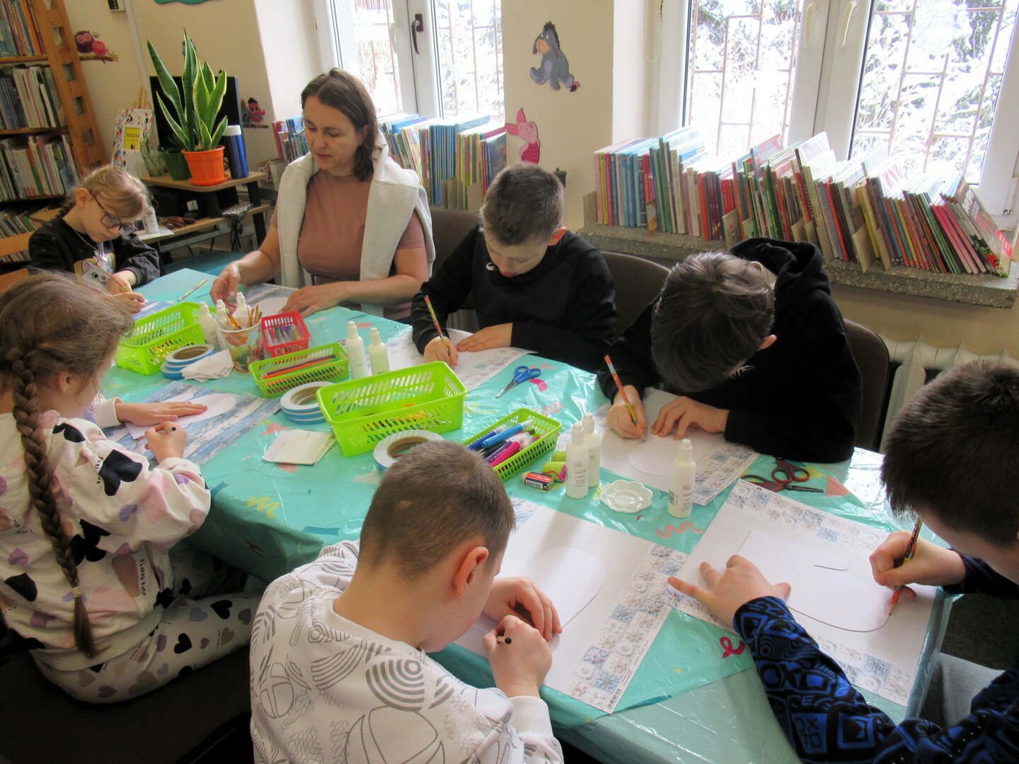 Dużo czytaliśmy, bo książki to istota naszej działalności, ale organizowaliśmy także warsztaty, gry, spotkania, a nawet koncert. W ruch szły farby, kartki, nożyczki, sznurki, gwoździe i wiele innych przyborów i materiałów. Frekwencja i uśmiechnięte buzie dzieci były dla nas wyjątkowymi nagrodami za organizację maratonu zimowych atrakcji. Było twórczo, różnorodnie i radośnie – dziękujemy za wspólnie spędzony czas!