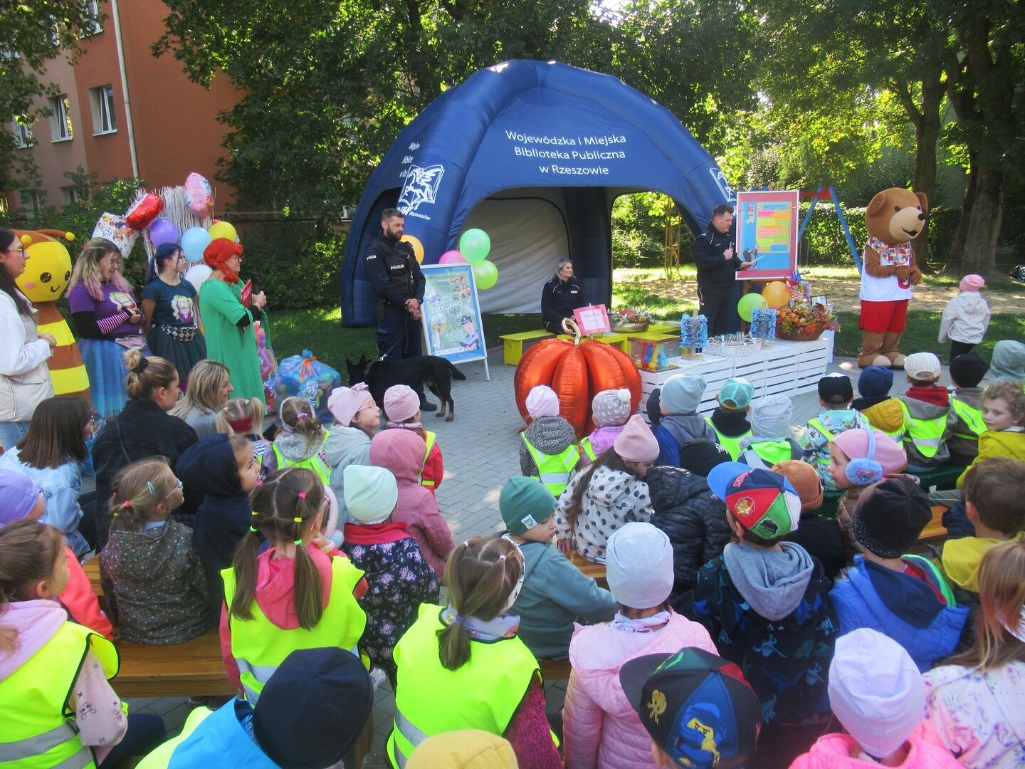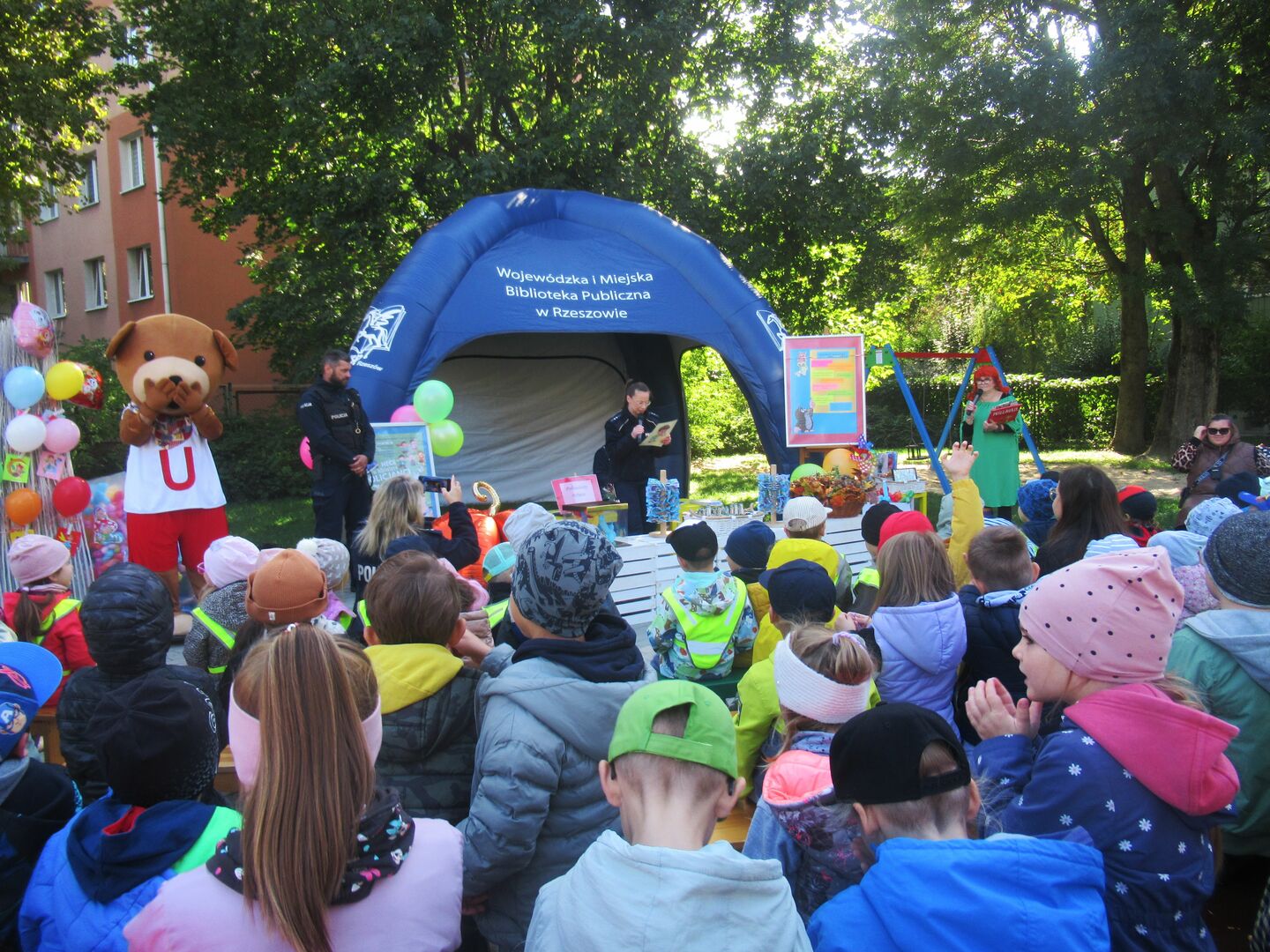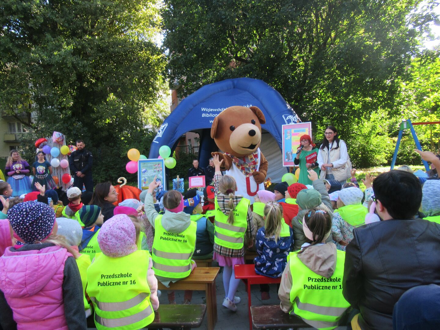 Dziękujemy policjantom z Komendy Miejskiej Policji w Rzeszowie za udział w naszej plenerowej akcji czytelniczej oraz wszystkim zgromadzonym uczestnikom – dzieciom z Przedszkoli Publicznych nr 15, 16 i 29, Prywatnego Przedszkola Pinokio oraz Szkoły Podstawowej nr 2 w Rzeszowie wraz z nauczycielami i opiekunami. Podziękowania składamy także Muzeum Dobranocek ze zbiorów Wojciecha Jamy w Rzeszowie za obecność Misia Uszatka.