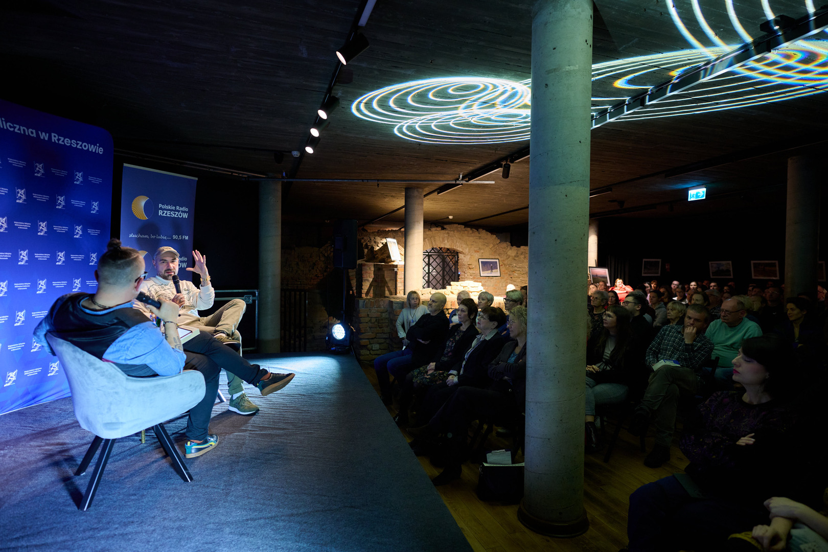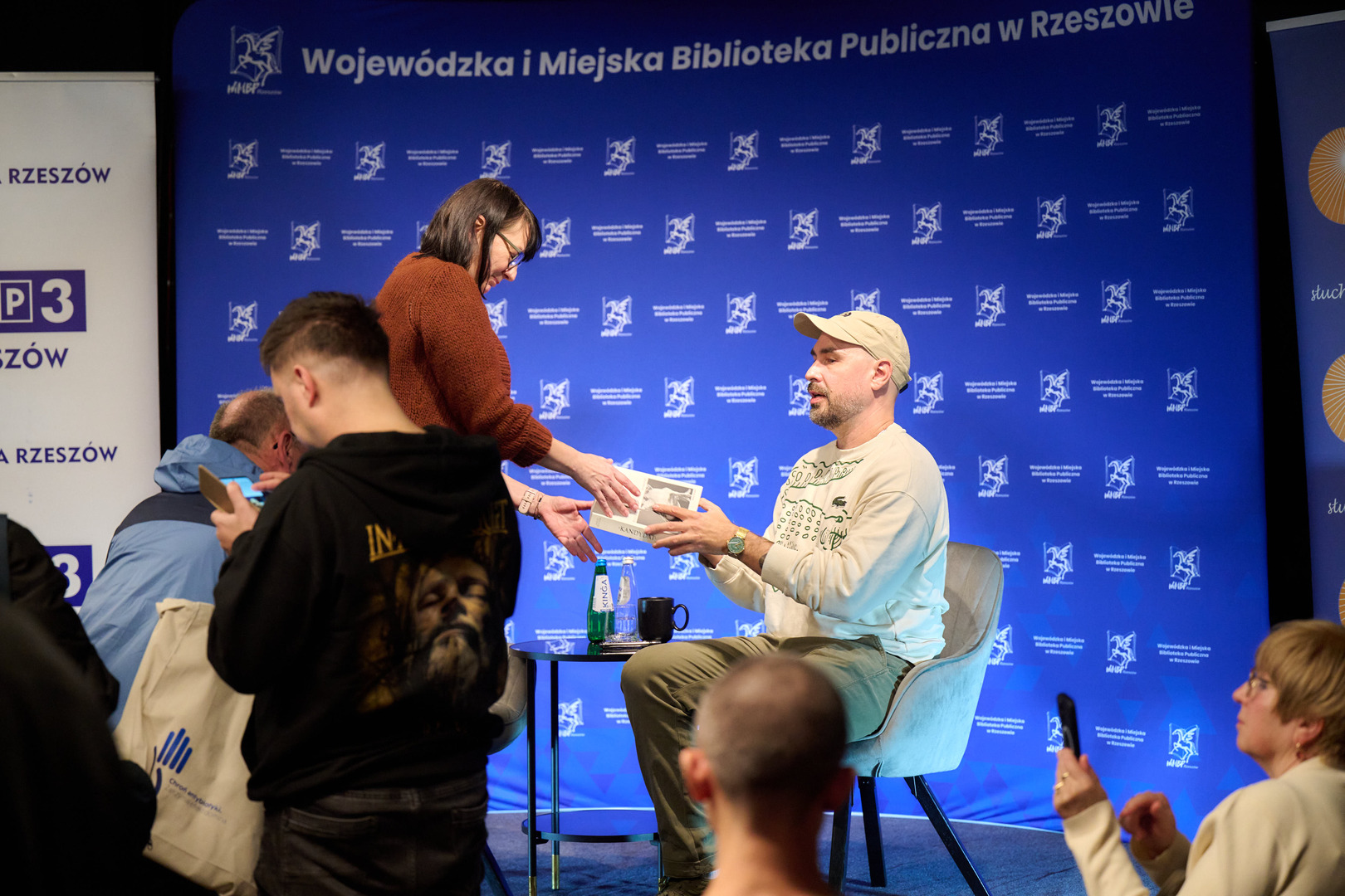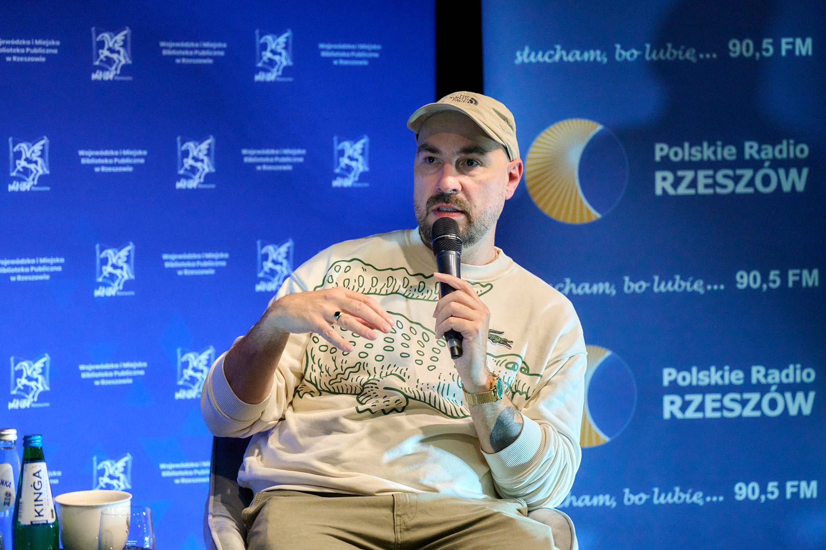 Spotkanie z Jakubem Żulczykiem było poświęcone m.in. książkom, procesowi pisania czy pomysłom na kolejne wyzwania twórcze. Nasz gość to człowiek wielu zainteresowań: pisarz , felietonista, scenarzysta filmowy, autor podcastów i bezkompromisowy komentator rzeczywistości. Wydarzenie zorganizowaliśmy 17 października 2025 r. w Rzeszowskich Piwnicach w ramach projektu „W relacji ze słowem”.