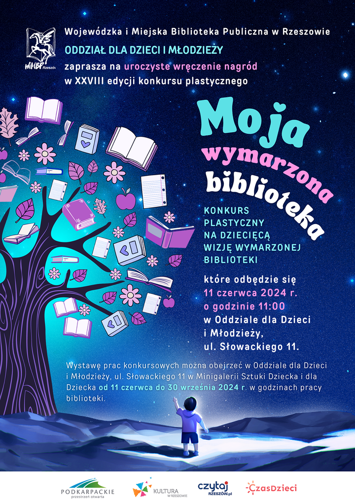 Uroczyste wręczenie nagród i wyróżnień wraz z prezentacją wystawy odbędzie się dnia 11 czerwca 2024 r. o godzinie 11:00 w Oddziale dla Dzieci i Młodzieży, ul. Słowackiego 11.