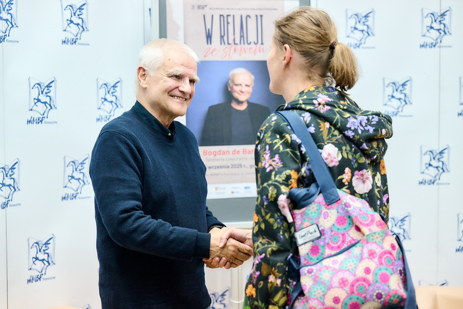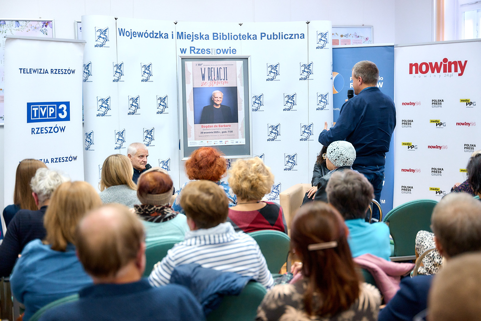 26 września 2025 roku w Wojewódzkiej i Miejskiej Bibliotece Publicznej w Rzeszowie odbyło się wyjątkowe spotkanie z prof. Bogdanem de Barbaro – wybitnym psychiatrą, psychoterapeutą, wykładowcą i autorem książek. Rozmowę w ramach projektu „W relacji ze słowem” poprowadziła dziennikarka i eseistka Katarzyna Kubisiowska. Tłum słuchaczy zapełnił nie tylko salę konferencyjną, ale również hol i schody, tworząc wyjątkową, żywą przestrzeń do rozmowy.