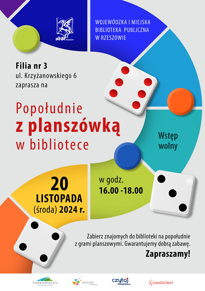 Zabierz znajomych do biblioteki na popołudnie z grami planszowymi. Gwarantujemy dobrą zabawę. Wstęp wolny. Zapraszamy!